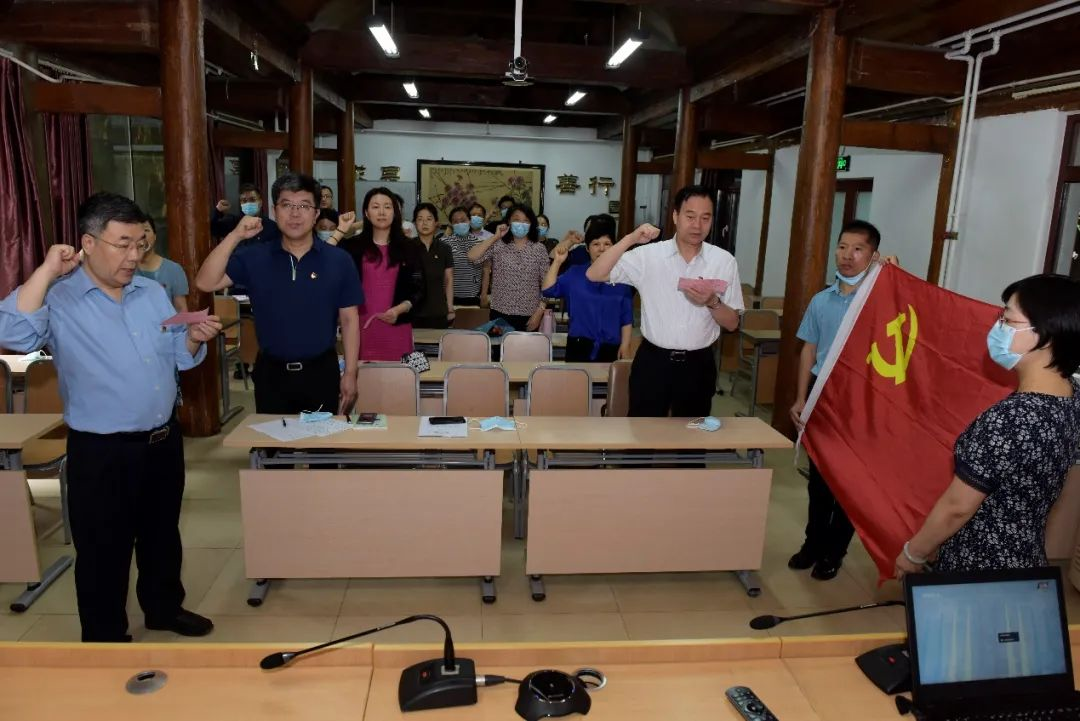 在這個(gè)重大而莊嚴(yán)的日子,北京中醫(yī)藥大學(xué)東直門醫(yī)院也是黨旗飄揚(yáng),黨徽熠熠閃光。全體院領(lǐng)導(dǎo)、職能部門負(fù)責(zé)人于東城院區(qū)朝陽苑第二會(huì)議室和通州院區(qū)八層會(huì)議室兩個(gè)分會(huì)場觀看大會(huì)直播。伴隨著大會(huì)開幕,全場首先起立高唱國歌,在黨委書記葉永安的領(lǐng)誓下重溫入黨誓詞。