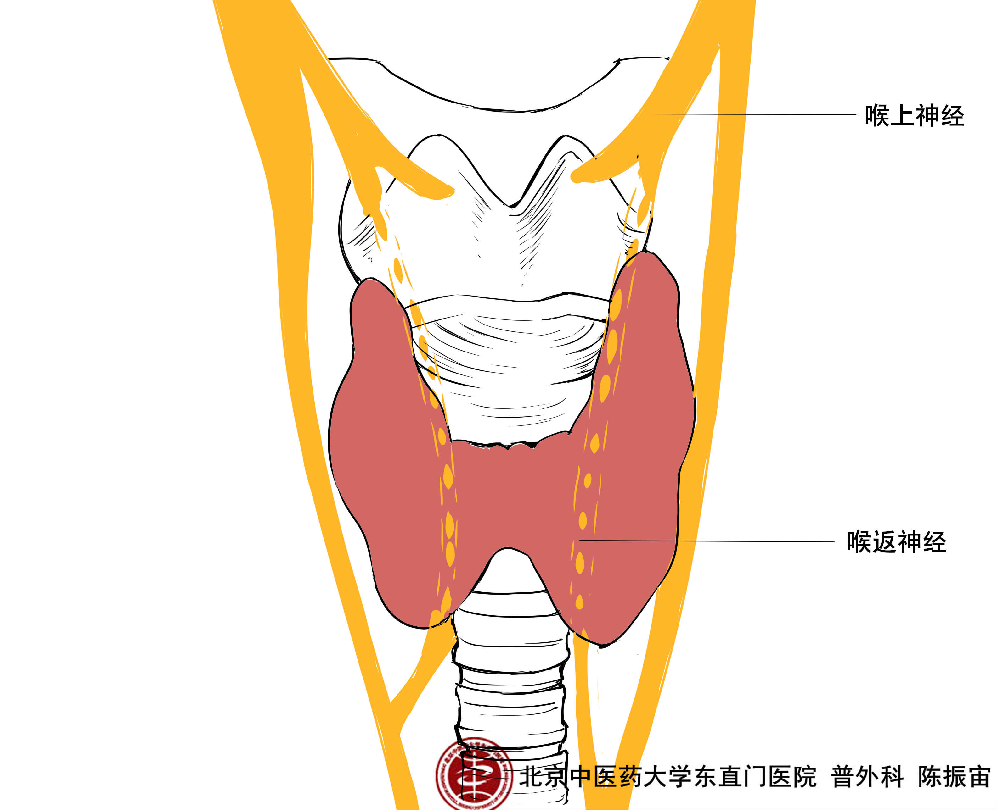 那么,既然切除甲狀腺問題多多,外科大夫為什么一般情況下會切除掉一側(cè)甲狀腺腺葉呢?這其中有部分原因就在于甲狀腺解剖位置上的獨特性。從解剖圖片上可以看出,甲狀腺的旁邊挨著人體非常非常非常(重要的事情說三遍!)重要的神經(jīng)。在做甲狀腺手術(shù)的時候,為了保護(hù)這些重要的神經(jīng)不受傷害,往往需要提前先找到它們,從而進(jìn)行顯露和保護(hù)它們。然而,由于神經(jīng)并不是非常直接的可以被找到,在找尋的過程中,多多少少都已經(jīng)是對神經(jīng)的一種潛在傷害了。所以,甲狀腺做一次手術(shù),神經(jīng)就可能存在一次傷害,那么,由于二次手術(shù)神經(jīng)顯露和保護(hù)的難度遠(yuǎn)遠(yuǎn)大于首次手術(shù),盡量避免甲狀腺二次手術(shù)也就成為了保護(hù)神經(jīng)的一種退而求其次的保護(hù)方式。順理成章的,一次盡可能切除掉一側(cè)的甲狀腺,避免殘留甲狀腺疾病復(fù)發(fā)也就是一種非常符合邏輯的選擇了。帶來的直接問題是顯而易見的,甲狀腺術(shù)后患者的甲狀腺功能減退問題也就大大增加了。