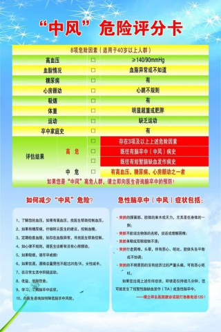 “腦卒中”又稱“中風”或“腦血管意外”,是一種急性腦血管疾病,它包括缺血性和出血性卒中,其中缺血性卒中的發(fā)病率約占腦卒中總數(shù)的70%~80%,出血性卒中的發(fā)病率約占腦卒中總數(shù)的20%~30%。腦卒中的危害概括為“四高”,即高發(fā)病率、高死亡率、高致殘率和高復(fù)發(fā)率。①發(fā)病率高:腦血管病世界平均發(fā)病率高,而且患者越來越趨于年輕化,我國每年有200多萬人發(fā)生腦卒中。②死亡率高:全球每年5500萬人死亡人數(shù)中,因腦卒中死亡者占800萬。③致殘率高:大量資料表明,患腦血管病經(jīng)搶救存活者中,50%~80%留下不同程度的致殘性后遺癥,存在后遺癥的患者中約有3/4喪失勞動能力,1/6長期臥床。④復(fù)發(fā)率高:據(jù)統(tǒng)計,五年內(nèi)腦卒中復(fù)發(fā)率高達41%,十年內(nèi)復(fù)發(fā)率更高。腦卒中一旦再次復(fù)發(fā),病情會更為兇險,因此要高度重視腦卒中的治療和預(yù)防。腦卒中雖“難治”但“能防”,早期進行腦卒中篩查,及早針對危險因素診斷治療,可以有效防止腦卒中的發(fā)生。我院腦病科專門成立腦卒中篩查門診,以腦病科為主,聯(lián)合心病科、糖尿病、體檢科和B超影像科等科室,對相關(guān)人群進行篩查。