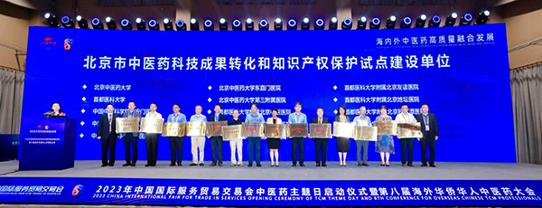 2023年9月4日,中國國際服務貿易交易會中醫(yī)藥主題日啟動儀式暨第八屆海外華僑華人中醫(yī)藥大會在北京首鋼園舉行。會上舉行了北京市中醫(yī)藥科技成果轉化和知識產權保護試點建設單位、試點建設基地授牌儀式。北京中醫(yī)藥大學東直門醫(yī)院成為首批北京市中醫(yī)藥科技成果轉化和知識產權保護試點建設單位。