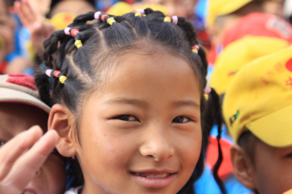 孩子們都很乖,300個(gè)孩子有秩序地排成一隊(duì)隊(duì),一張張燦爛的笑臉,像一朵朵盛開的格?;?,站在他們中間,我們仿佛回到了童年。